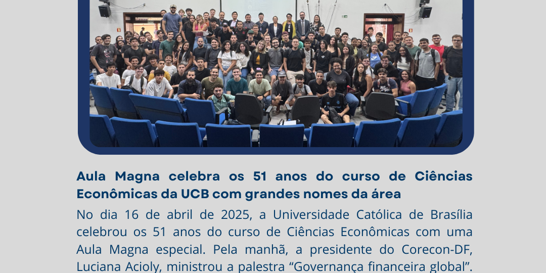 No dia 16 de abril de 2025, a Universidade Católica de Brasília (UCB) promoveu uma Aula Magna especial em comemoração aos 51 anos do curso de Ciências Econômicas, celebrando mais de meio século de história, formação e contribuição para o desenvolvimento do pensamento econômico no país.