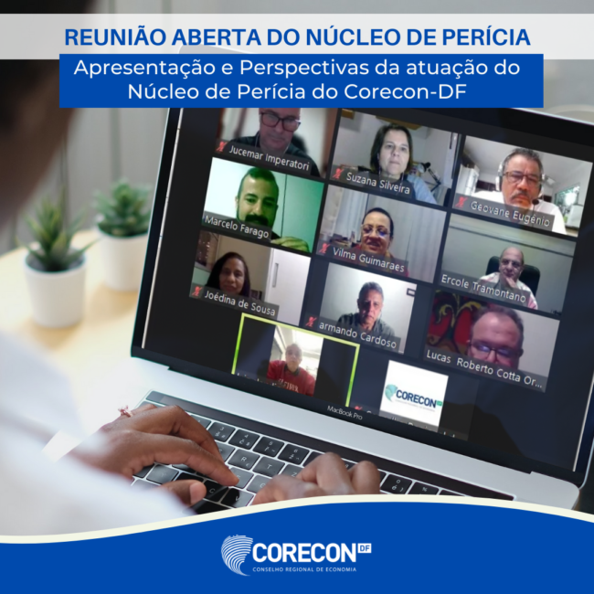 Núcleo de Perícia Econômico-Financeira do Corecon-DF convida os profissionais da área para apresentação e perspectivas de atuação do Núcleo. A reunião ocorrerá de forma virtual, pelo Zoom, no dia 19 de maio, quinta-feira, às 19h. Para participar é necessário fazer inscrição pelo link a seguir: https://forms.gle/hPrWPJmsgEtyrERv7.