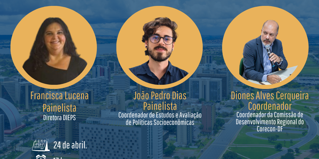Nesta primeira edição, o tema central será a Pesquisa Distrital por Amostra de Empresas (PDAE), com apresentações de Francisca de Fátima de Araújo Lucena, Diretora do DIEPS/IPEDF, e João Pedro Cardoso Dias, Coordenador de Estudos e Avaliação de Políticas Socioeconômicas do IPEDF. A coordenação dos trabalhos ficará a cargo de Diones Alves Cerqueira, representante do Corecon-DF.