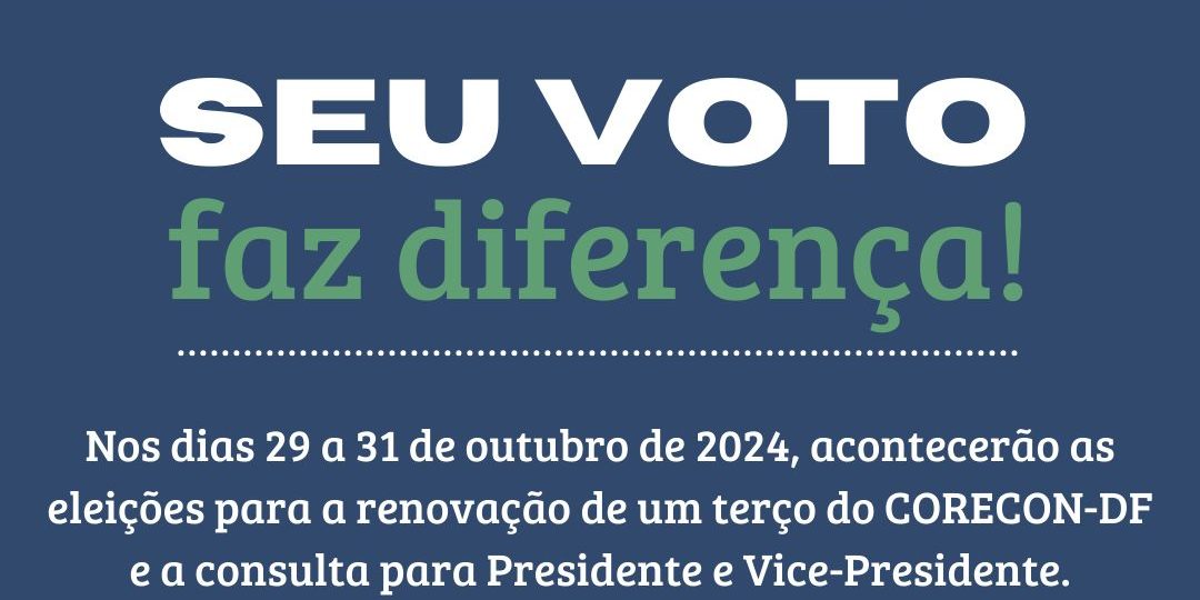 Entre os dias 29 e 31 de outubro de 2024, ocorrerão as eleições para a renovação de um terço do CORECON-DF, além da consulta para a escolha do Presidente e Vice-presidente.